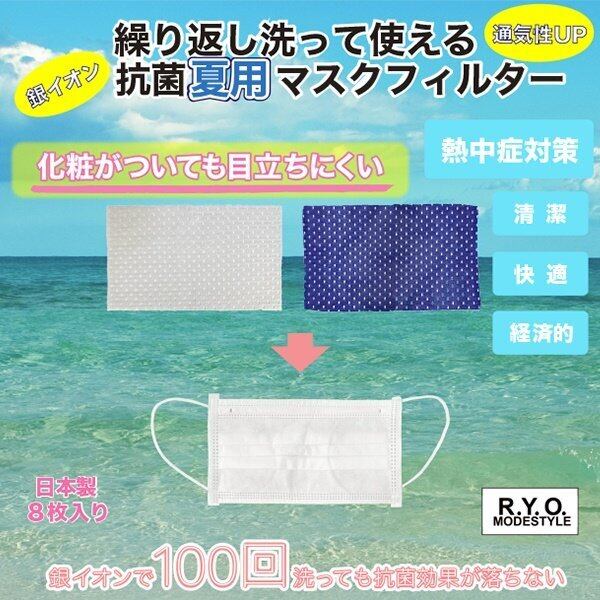 シリーズ累計10万枚突発!! 日本製 繰り返し洗って使える抗菌夏用マスクフィルター 8枚入り