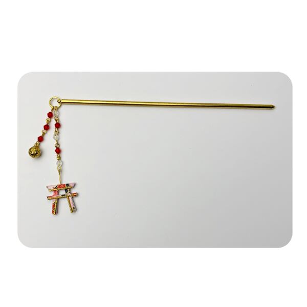 鳥居 約w22mmx20mm ビーズ 約3mm 簪の長さ150mm