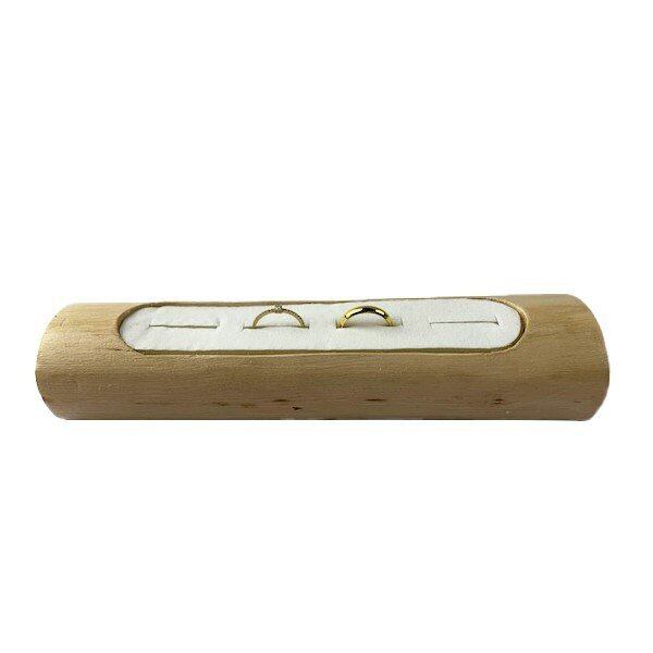 木をくり抜きリング用台紙を入れて作成したオリジナルディスプレイです。