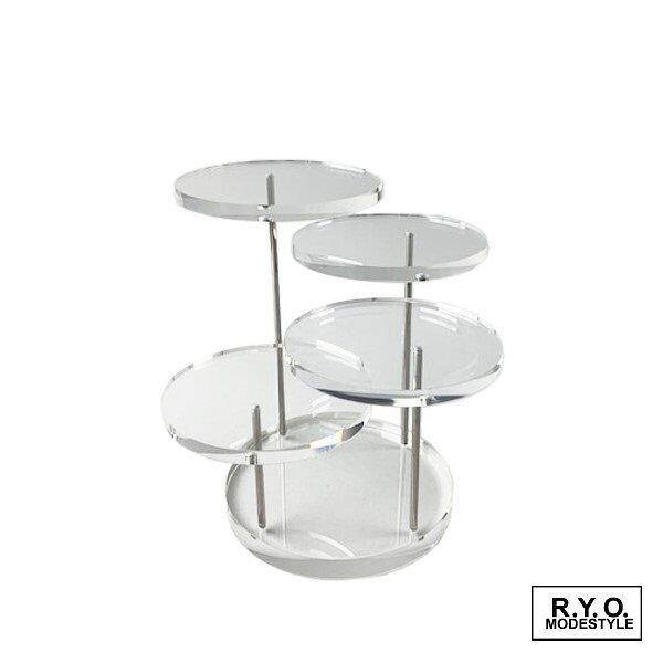 アクリルの円板が4枚付いておりそれぞれにアクセサリー、鉱物などを飾ってください。