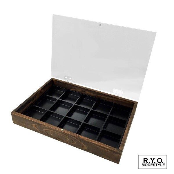 ルースケース50mmが入る台紙が木のケースの中に入っております。 マスの数は15個です。