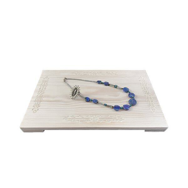 板に彫刻が施してありボヘミアン調な雰囲気でシルバー、天然石などにとてもマッチします。