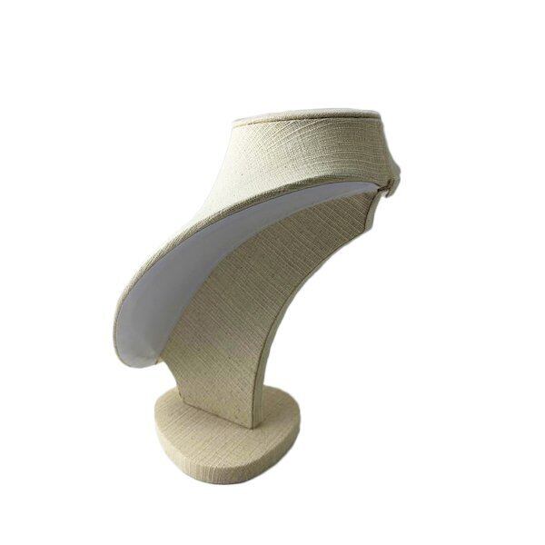 曲線が美しいトルソーです。表面にコットンを使い、軽やかで明るい印象で薄い色の石、シルバー、ゴールド、その他幅広いアクセサリー、ジュエリーにお使いいただけます。