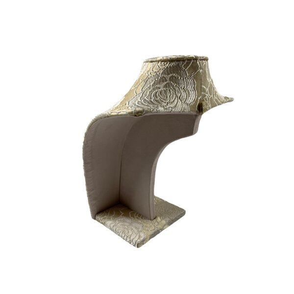 限定の布で作った高級トルソーです。光沢のある生地にバラの模様が刺繍されており、とても華やかな商品です。