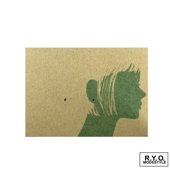 印刷の耳の位置にピアスを付け、装着イメージがわかりやすい、おしゃれな台紙です。