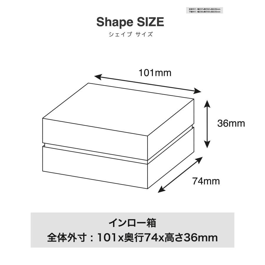 サイズ シェイプサイズに記載紙質 高級国産紙 生産 MADEINJAPAN納期 デザイン確定後、3週間程度で発送 インサイド インサイドに記載贈答品用に、または大切なアクセサリーなどの保管用に使うことができます。当店では様々なギフトボックスやプレゼントにぴったりな紙箱などをご用意しておりますイベント、催事、お店のオープンなど期日の決まった日に必要な紙箱も他社様で不可能な納期案件も何度も対応経験があり、百貨店様、各売り場さんから必要な数量の紙箱を50〜1000の数量を納品いたしました。お客様一人一人に担当アドバイザーがつきます。紙箱のノウハウを持つアドバイザーがお客様のご要望をしっかりと伺い、素材、印刷方法、製造方法など品質とコストを考えて、最適なパッケージ企画を提案・見積させていただきますのでご相談はお気軽にお問合せください。