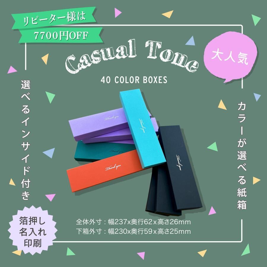 サイズ シェイプサイズに記載紙質 高級国産紙 生産 MADEINJAPAN納期 デザイン確定後、3週間程度で発送 インサイド インサイドに記載贈答品用に、または大切なアクセサリーなどの保管用に使うことができます。当店では様々なギフトボックスやプレゼントにぴったりな紙箱などをご用意しておりますイベント、催事、お店のオープンなど期日の決まった日に必要な紙箱も他社様で不可能な納期案件も何度も対応経験があり、百貨店様、各売り場さんから必要な数量の紙箱を50〜1000の数量を納品いたしました。お客様一人一人に担当アドバイザーがつきます。紙箱のノウハウを持つアドバイザーがお客様のご要望をしっかりと伺い、素材、印刷方法、製造方法など品質とコストを考えて、最適なパッケージ企画を提案・見積させていただきますのでご相談はお気軽にお問合せください。